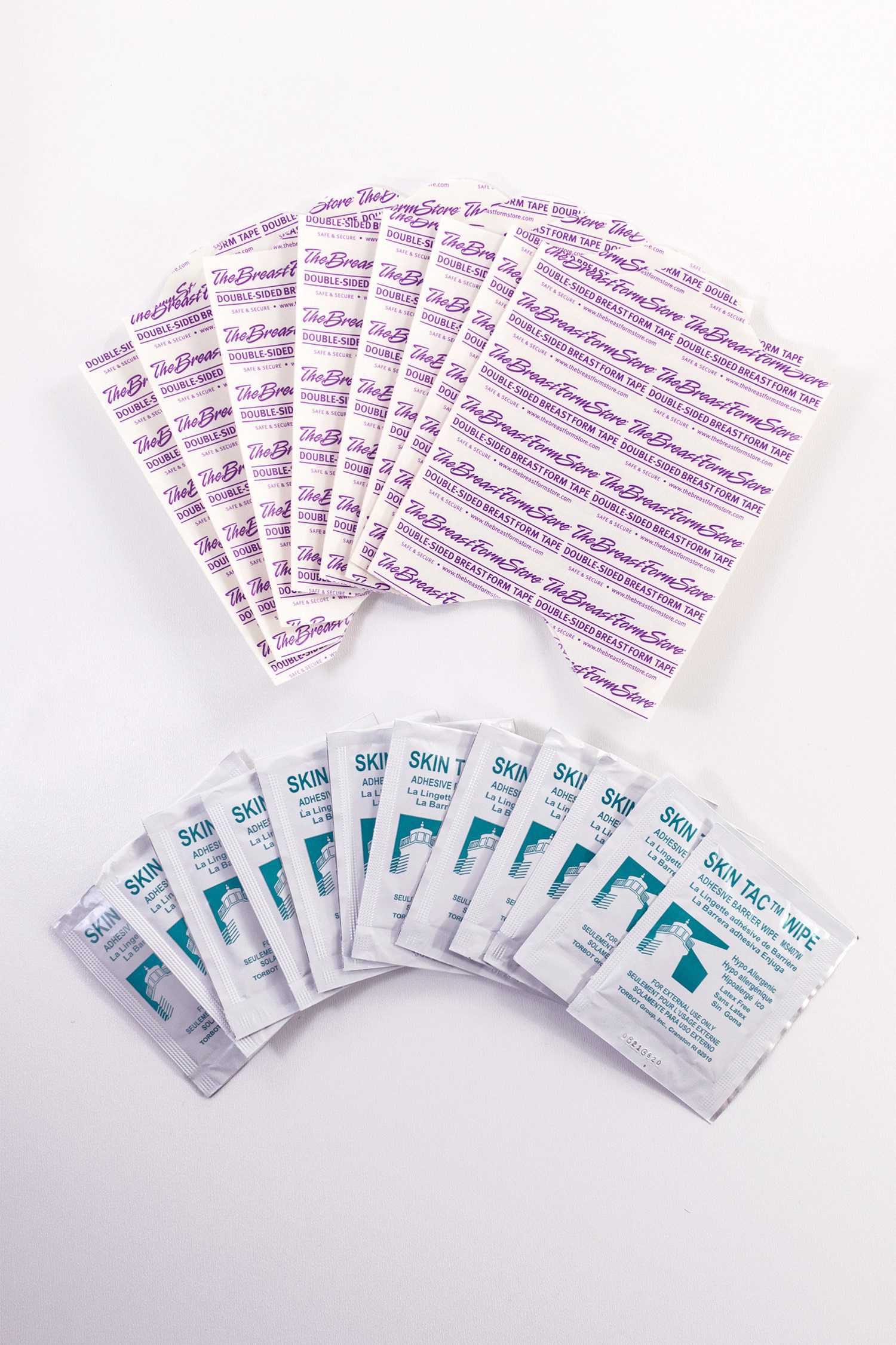 Double-Sided Tapes easily attach your breast forms to your chest, and are easy to remove