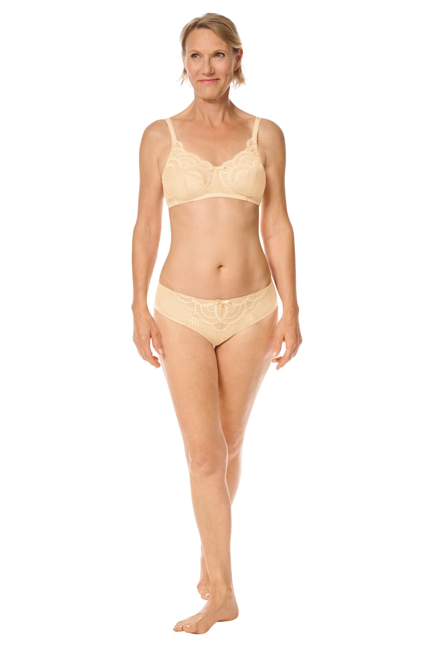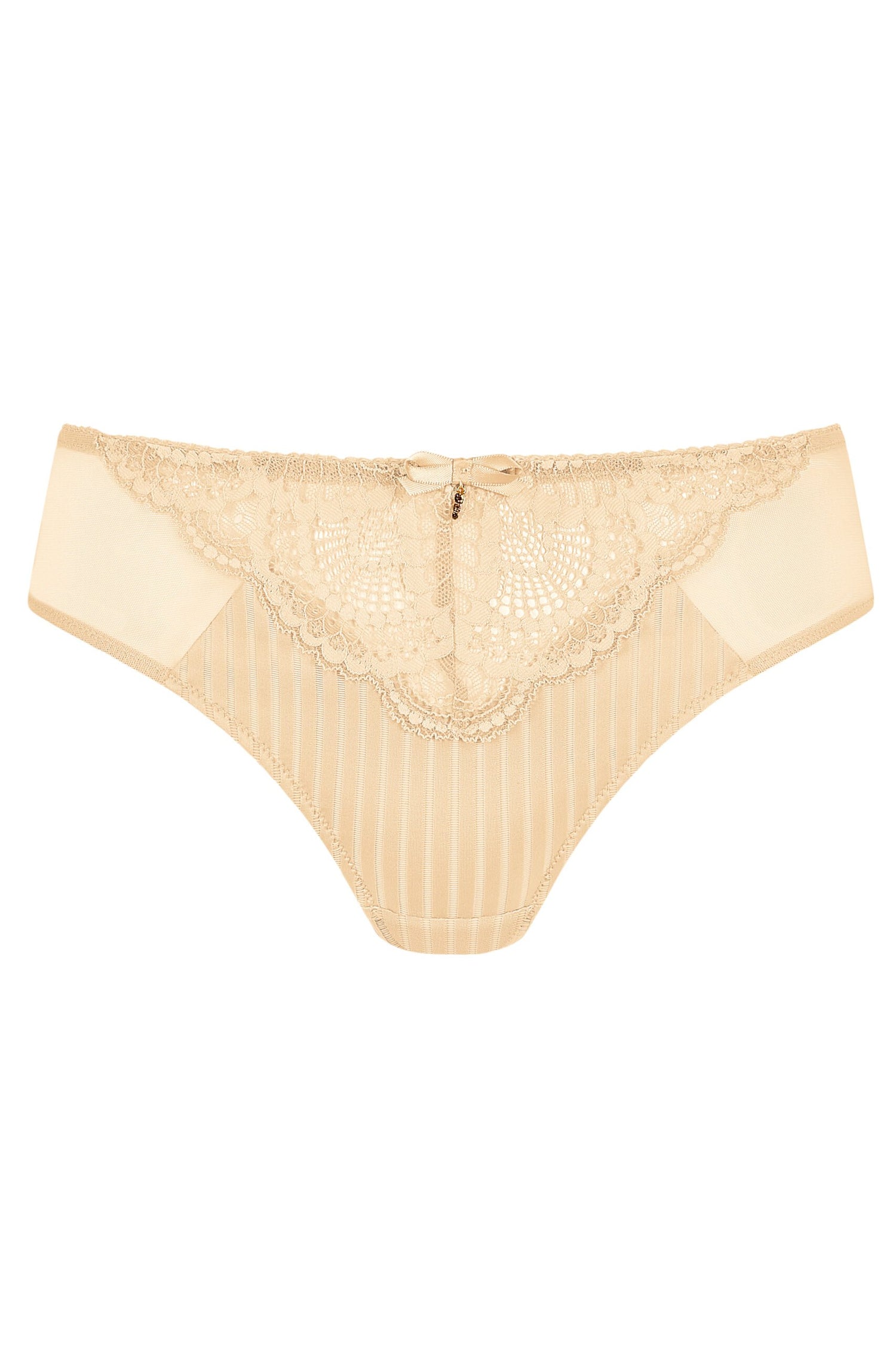 - Rich lace detailing in a fan optic at the waistline