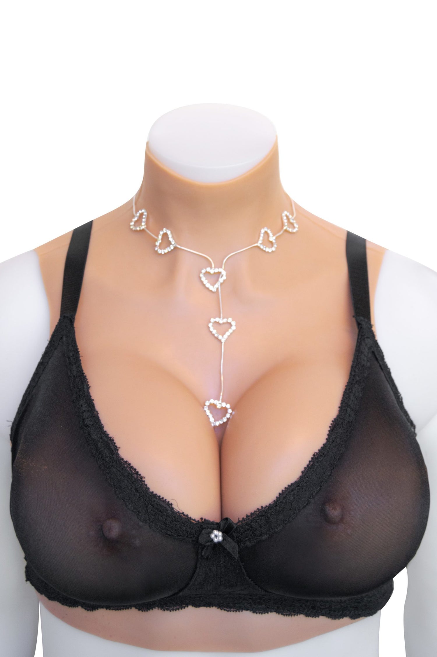 - Sheer mesh cup shows off your breast forms