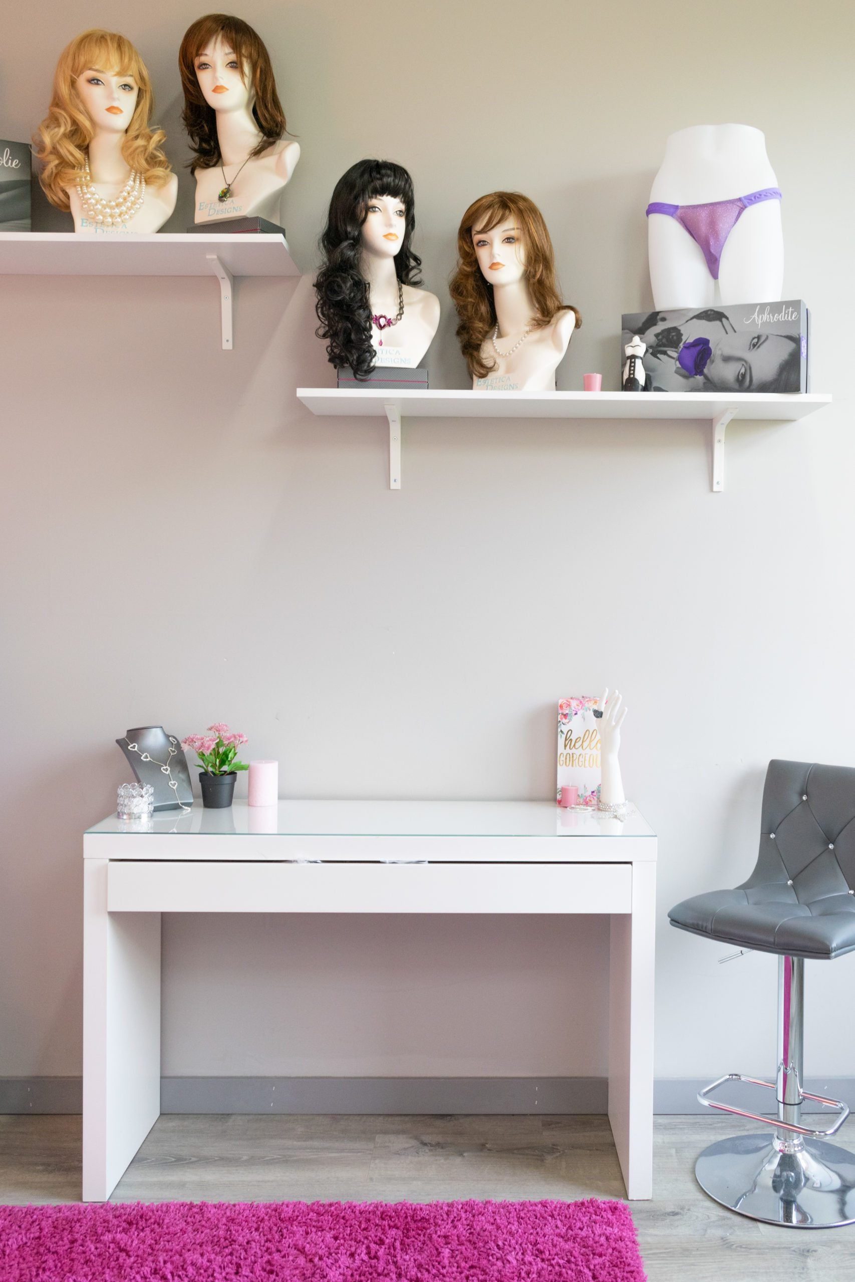Our private showroom is by appointment only, and is filled with all of your feminine favorites: hosiery, garter belts, bras, wigs, high heels and so much more. It’s a safe space to come and express your feminine side.